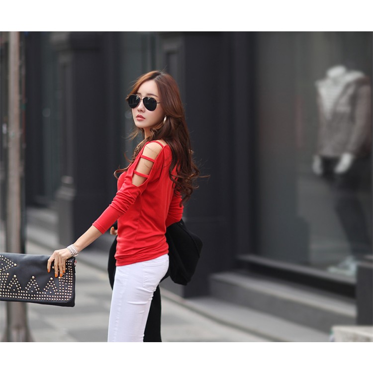 TE1371GJWL T-shirt joker casual alla moda coreana con spalle scoperte