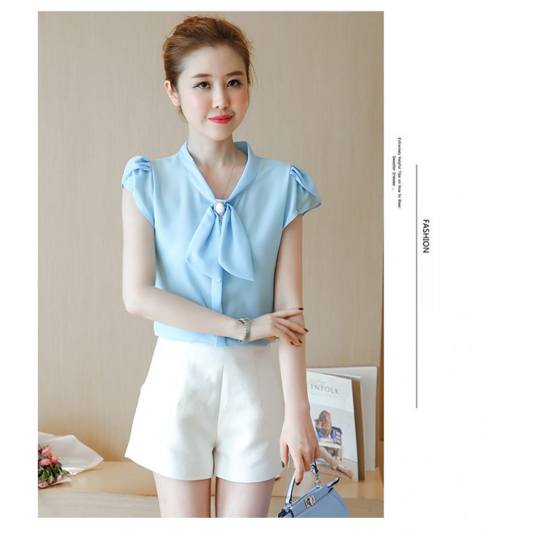 TE573LHFS Camicia estiva in chiffon a maniche corte con collo con fiocco