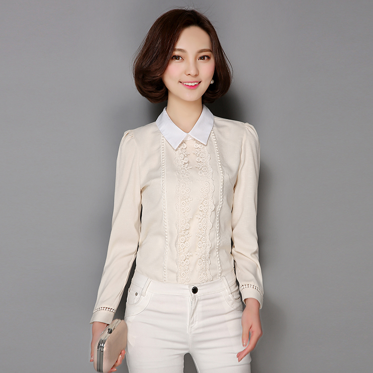 Camicia in chiffon di pizzo con colletto a bambola slim 8005 primaverile