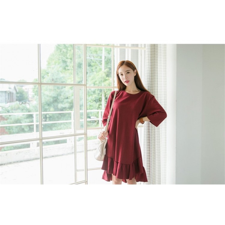 TE1563GJWL Abito t-shirt lungo alla moda coreana con volant irregolare sull’orlo