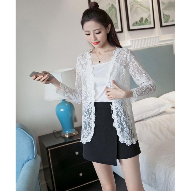 TE8708XBFS Cardigan sexy con protezione solare in pizzo trasparente