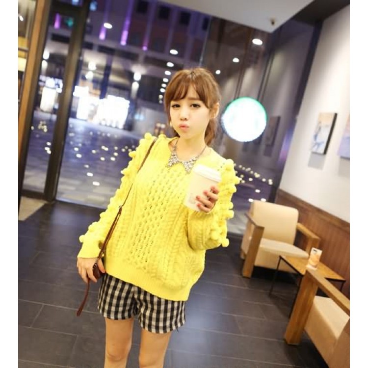 6607 Maglia con colletto tondo Maglione a maniche lunghe a maniche primaverili