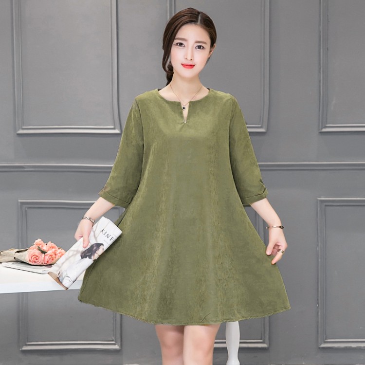 TE1662MLCS Abito ampio in velluto a coste vintage foresta
