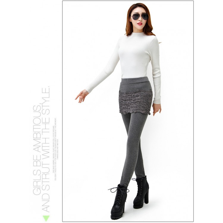 TE8132HMY Legging sottile in due pezzi finti con impunture in pizzo