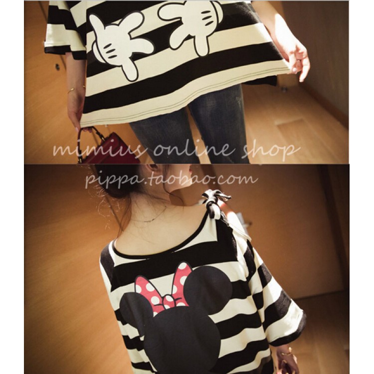 TE9898 T-shirt coreana con stampa di cartoni animati a righe sulle spalle