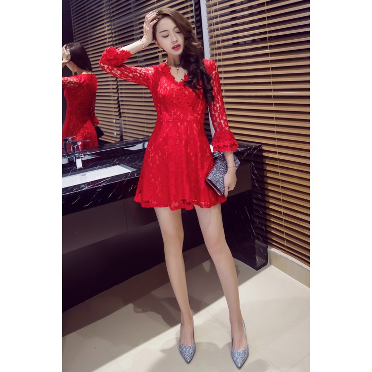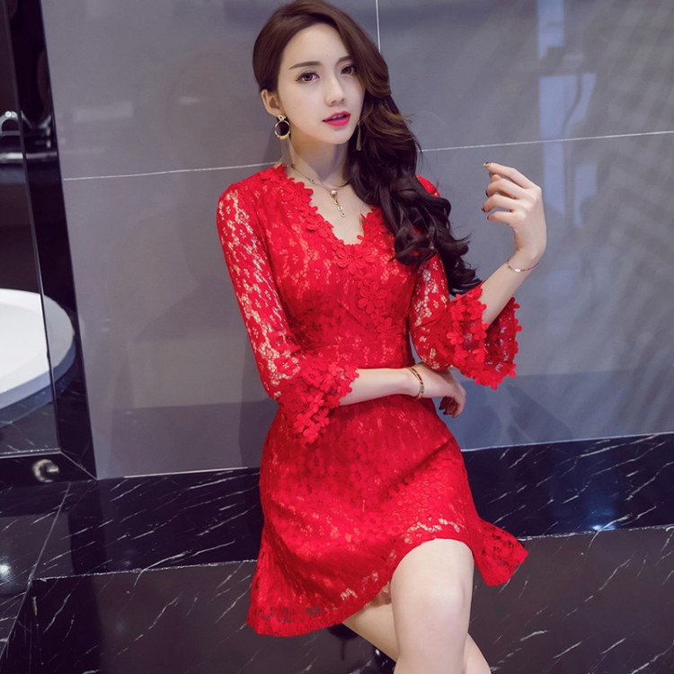 Recensisci per primo “6016 abito elegante in pizzo con scollo a V e maniche a tromba da donna alla moda”