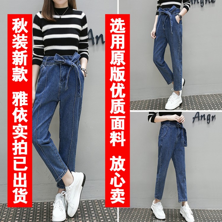 6396 jeans da donna di grandi dimensioni con allacciatura ampia in vita e piedi sottili