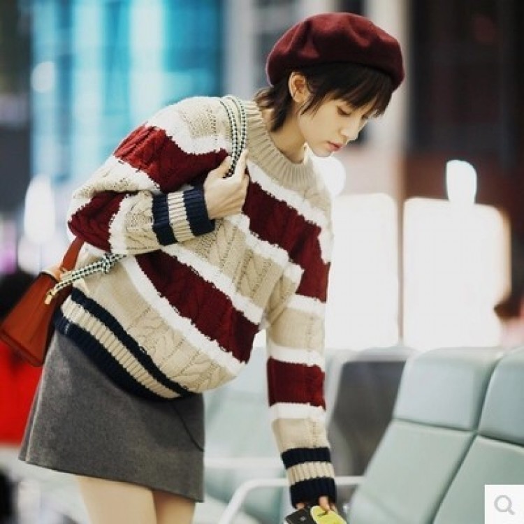 1 recensione per 6491 Maglione da donna con strisce intrecciate per la testa degli studenti