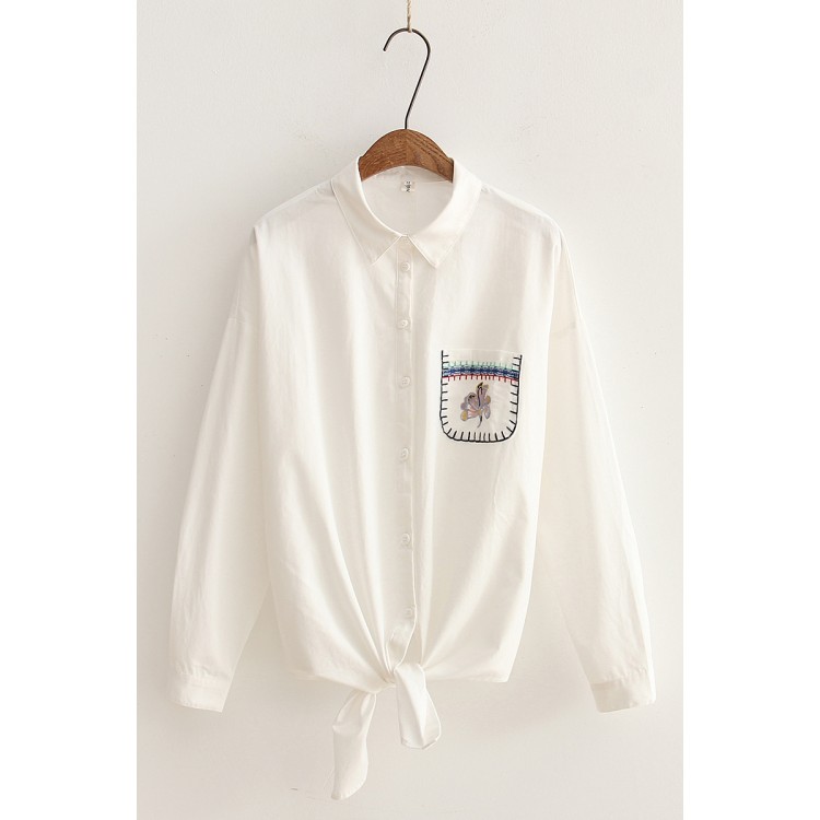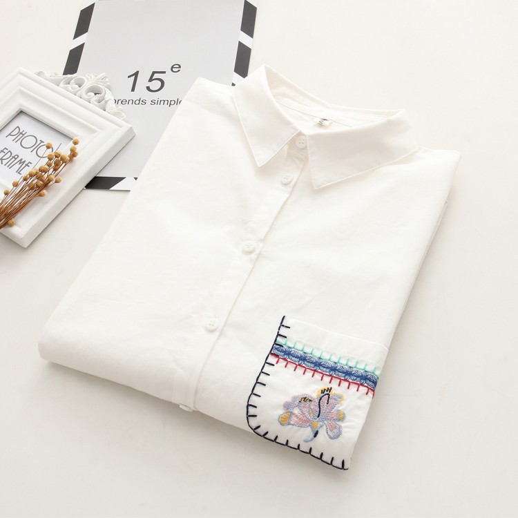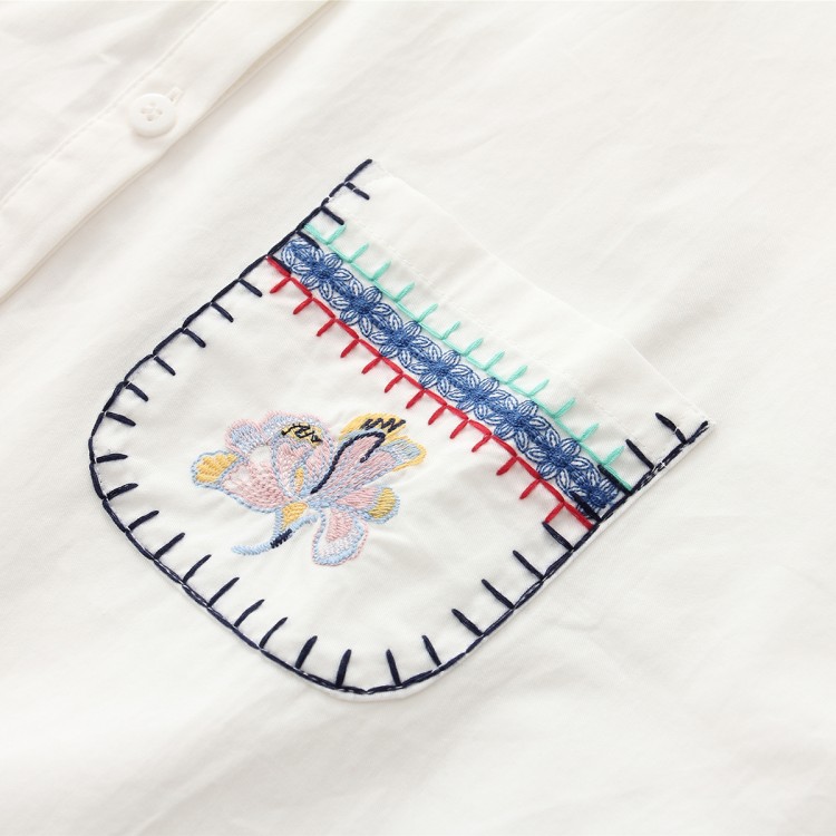 6905 camicia a maniche lunghe con tasca nuova ricamata primaverile