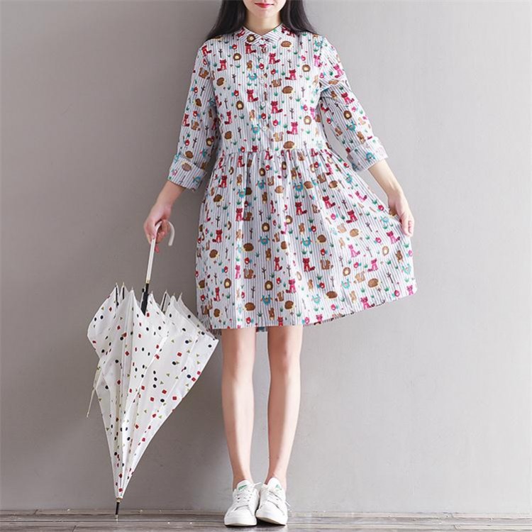1 recensione per 8250 abito con stampa animalier in cotone a righe con scollo tondo in stile retrò taglie forti