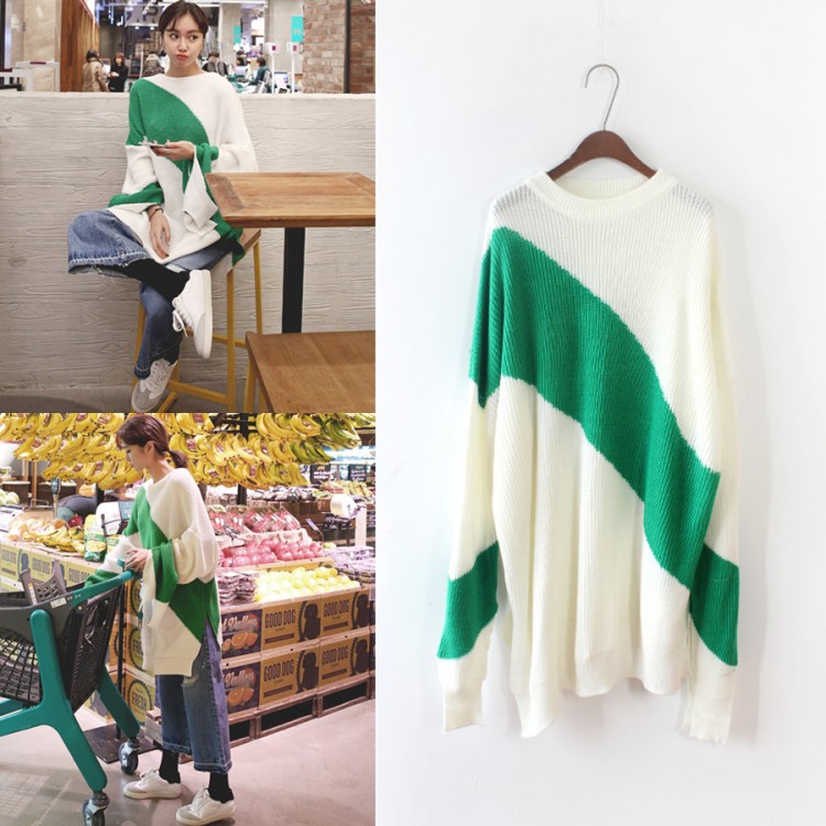 1 recensione per 8374 maglione sciolto con spacchi di giuntura a strisce oblique