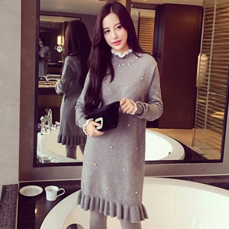 Abito maglione lavorato a maglia con collo rotondo con perle 1670 taglie forti