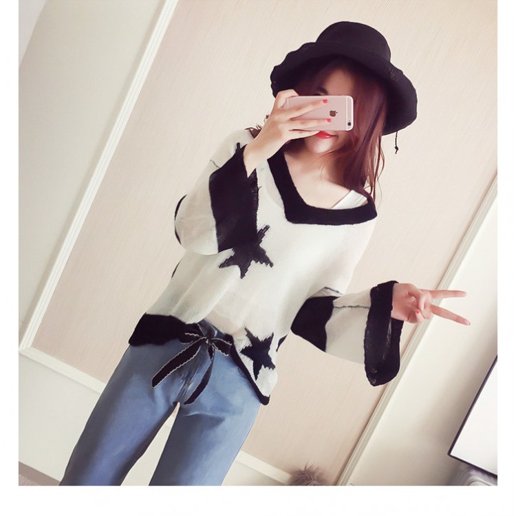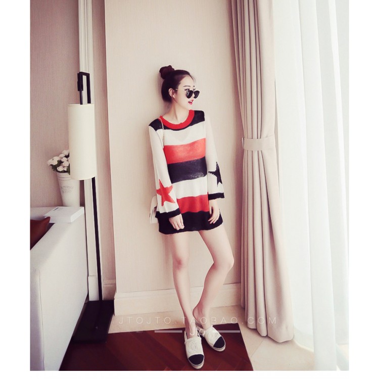 1 recensione per T116 maglione a righe larghe a maniche lunghe di nuova moda coreana estiva