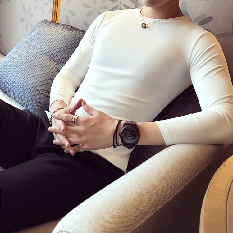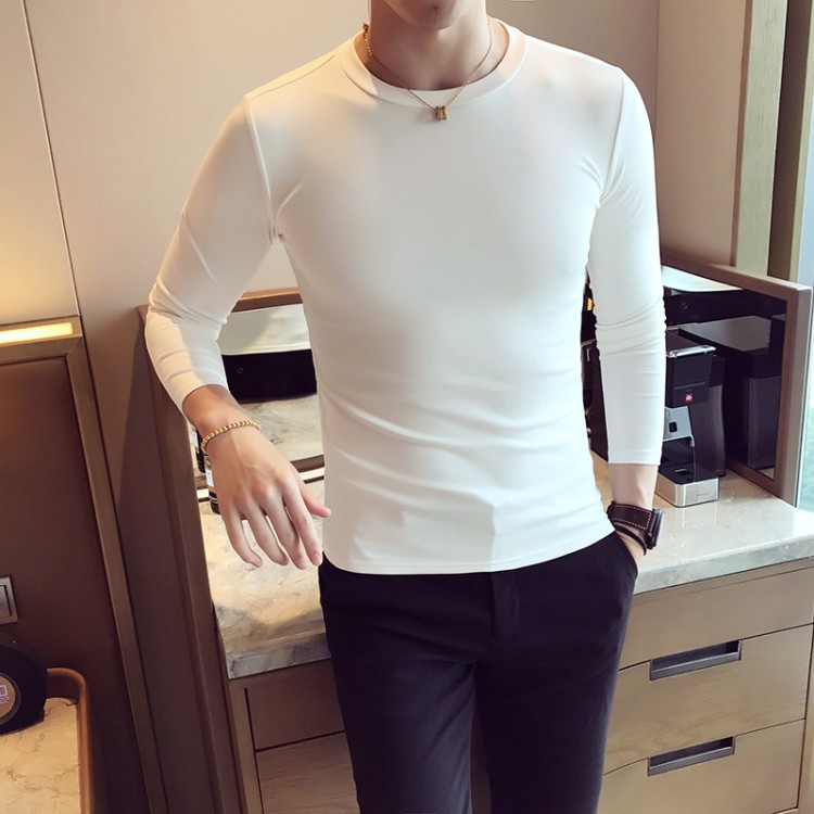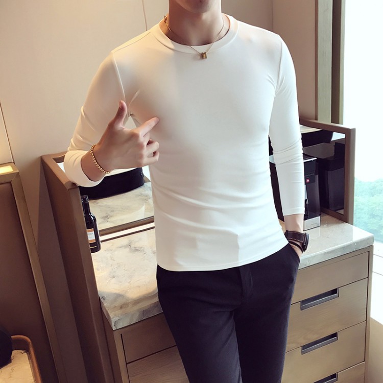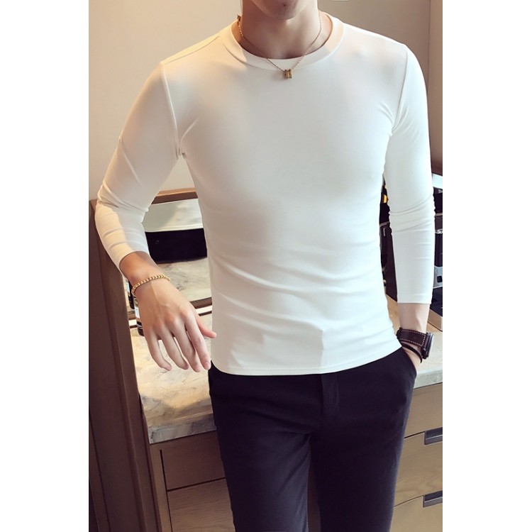 T508 T-shirt da uomo casual con fondo attillato in puro colore