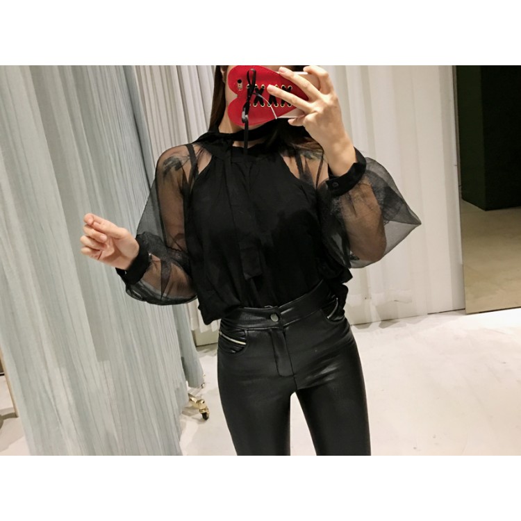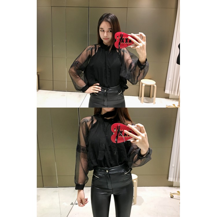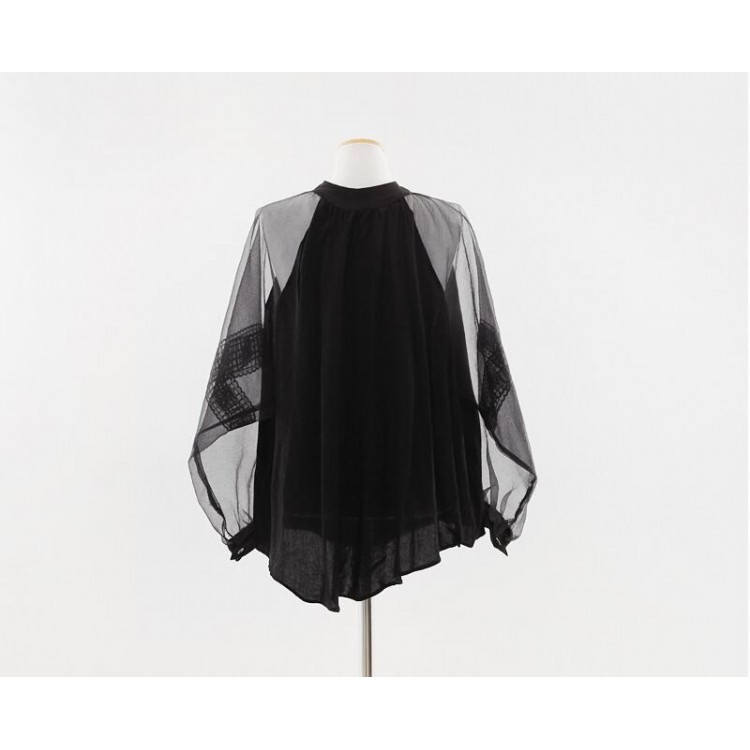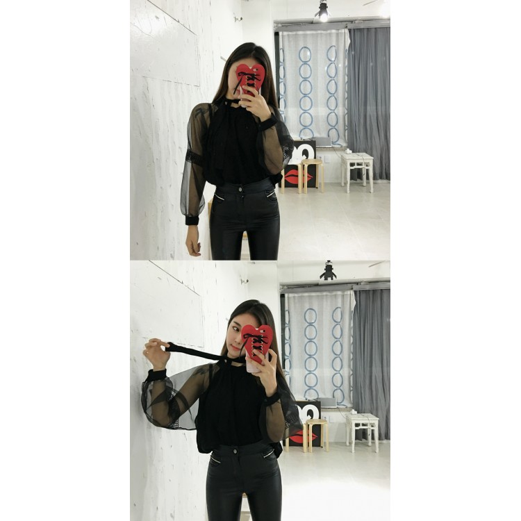 TE1189CND Top jolly con maniche trasparenti in pizzo dolce