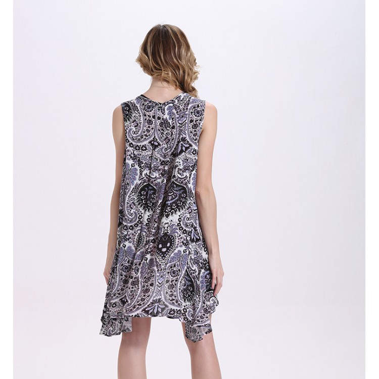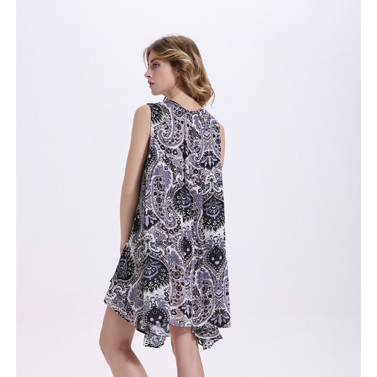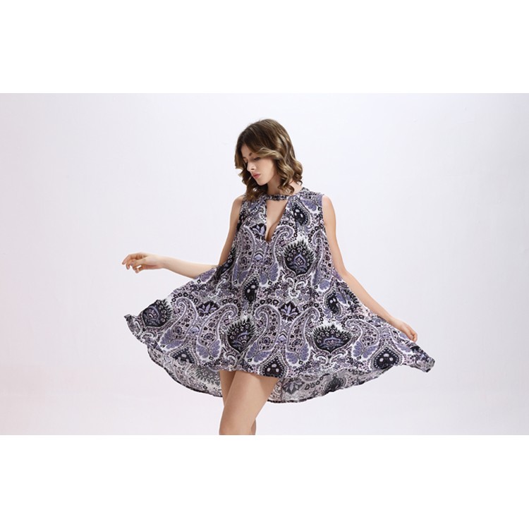 TE2099OMSS Abito alla moda europeo con scollo a V profondo senza maniche e orlo ampio
