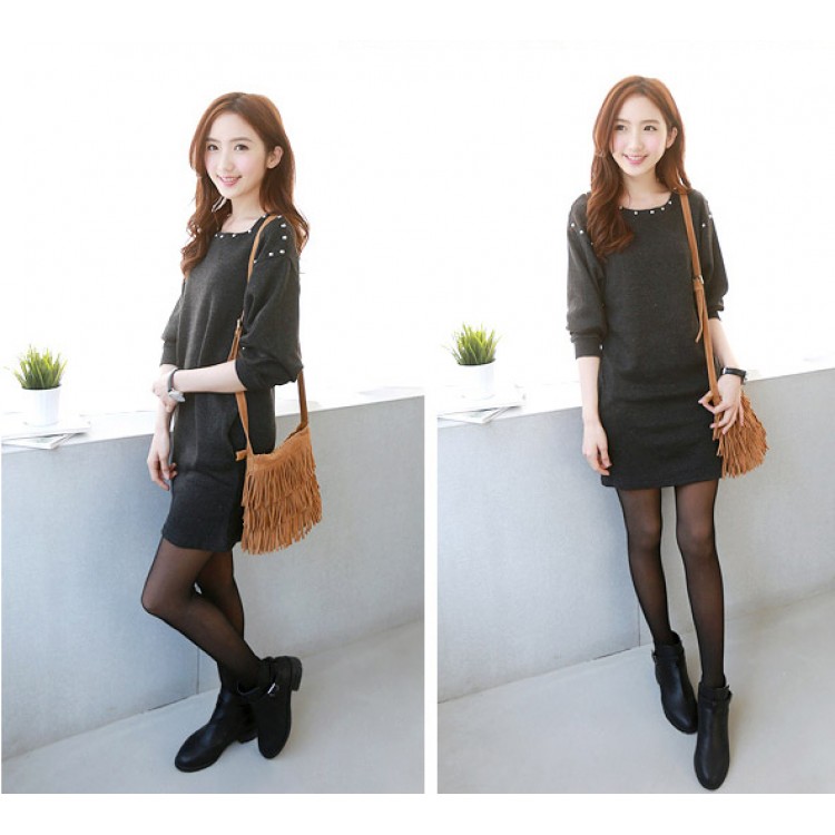 TE2161ALFS Abito a maniche lunghe con maniche a pipistrello alla moda coreana