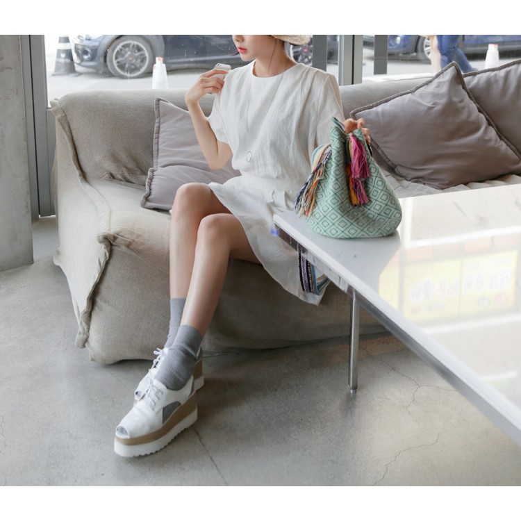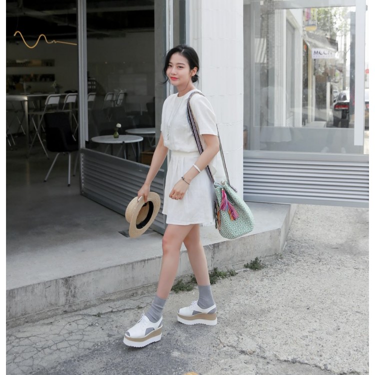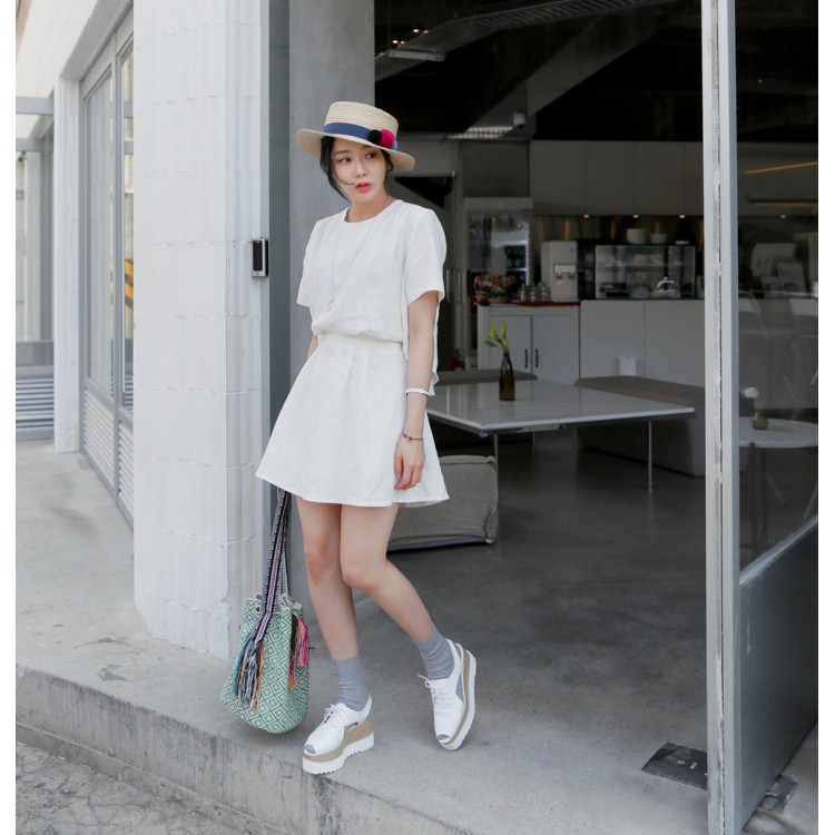 TE2220ALFS Abito dalla linea ad A in due pezzi finti alla moda coreana