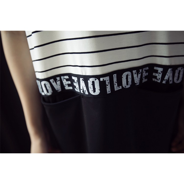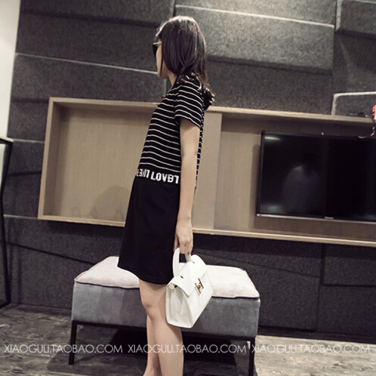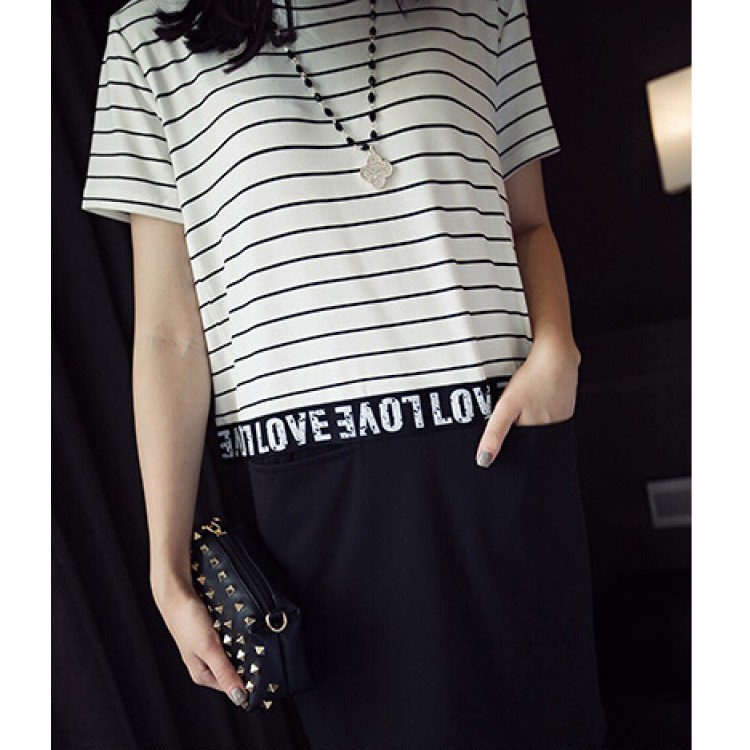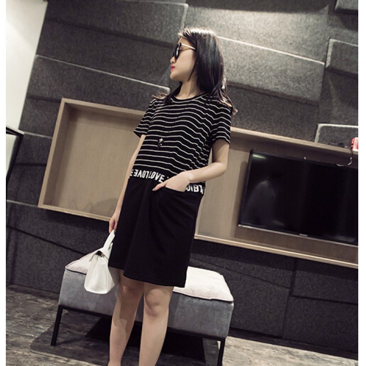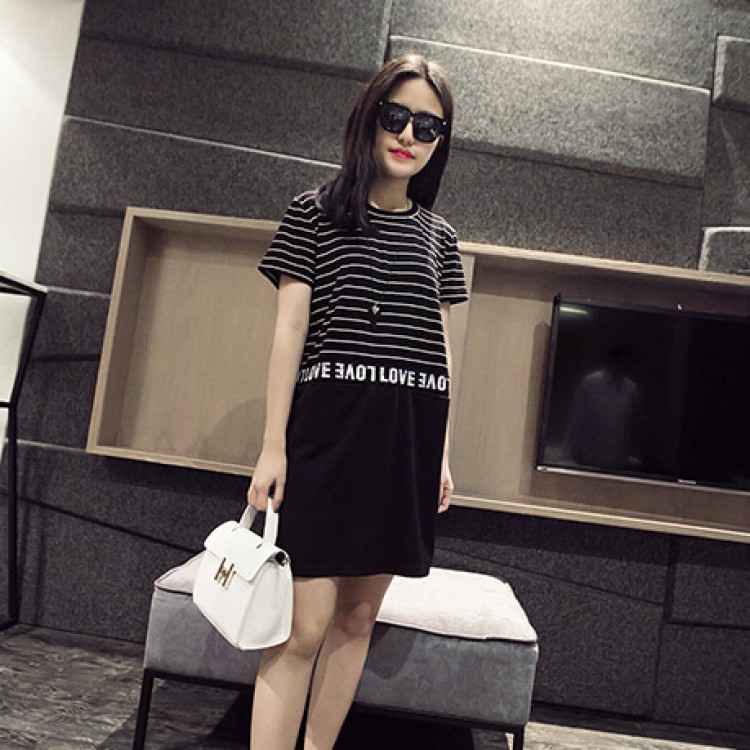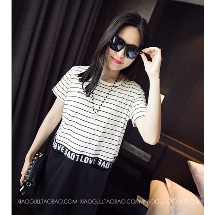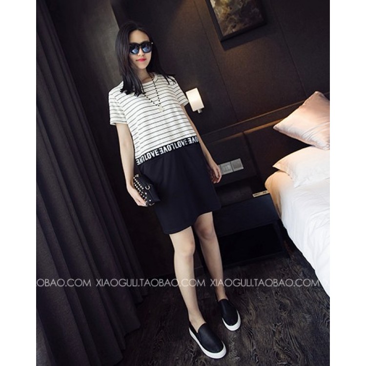 TE2649MZY Abito a maniche corte con stampa di lettere e strisce sottili alla moda coreana