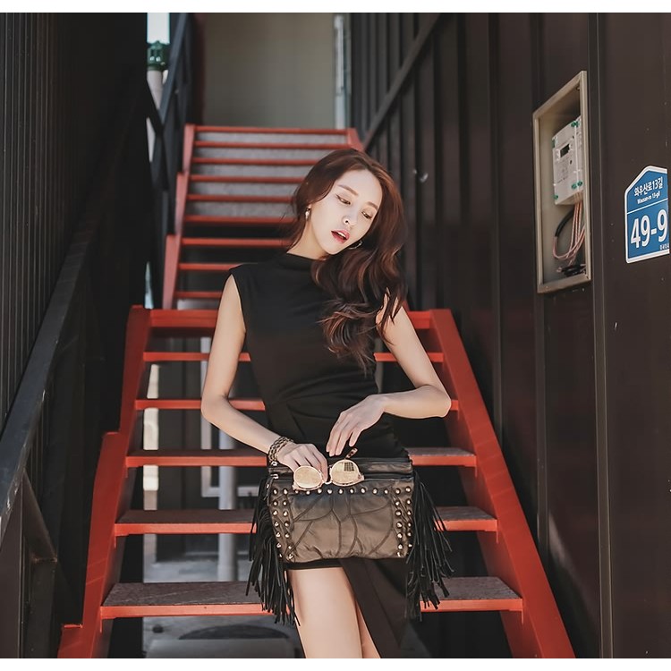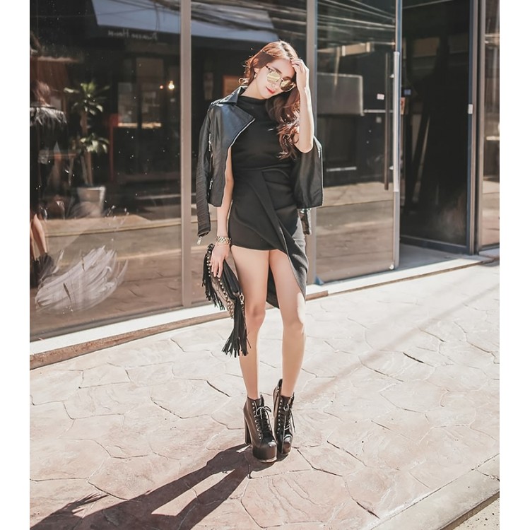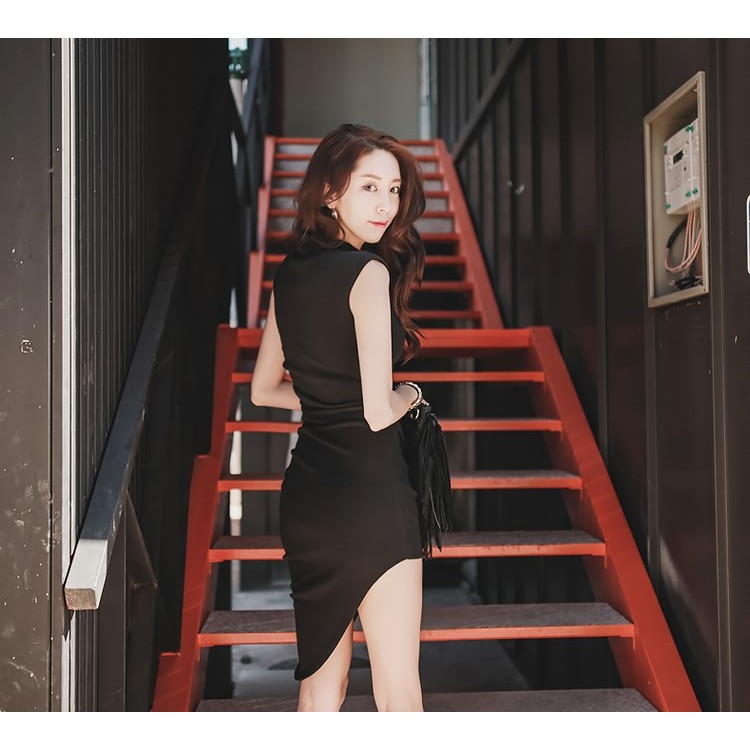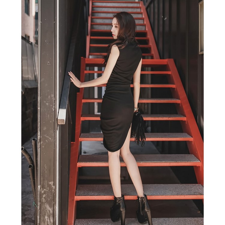 TE3013YZS Abito senza maniche con personalità sexy, fianchi stretti e irregolari