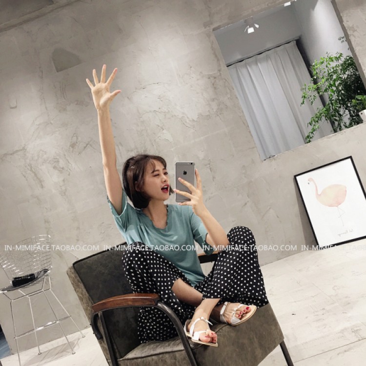 TE5266QBY Pantaloni in chiffon a gamba larga a pois di nuovo stile e di bell’aspetto