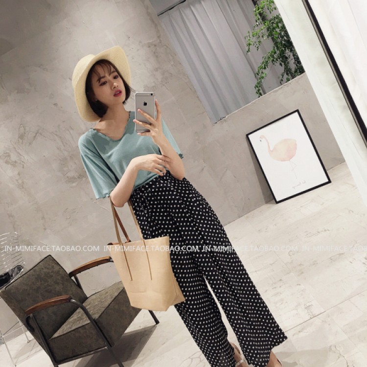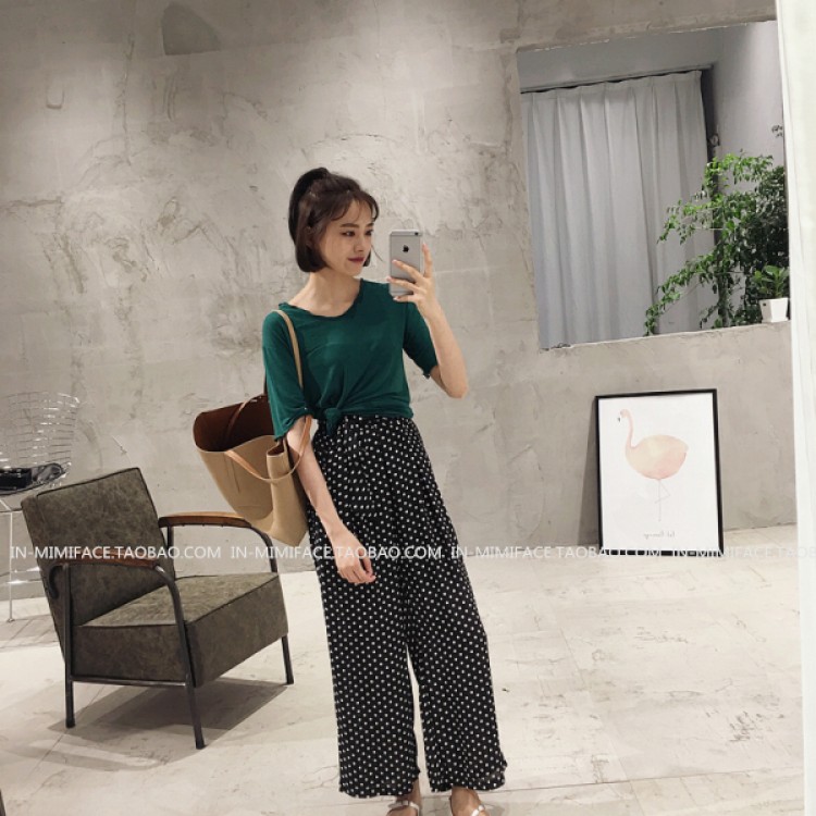 TE5266QBY Pantaloni in chiffon a gamba larga con puntini di nuovo stile e di bell’aspetto