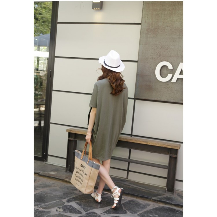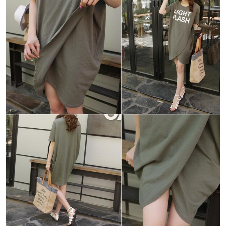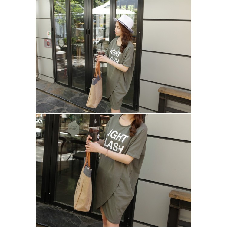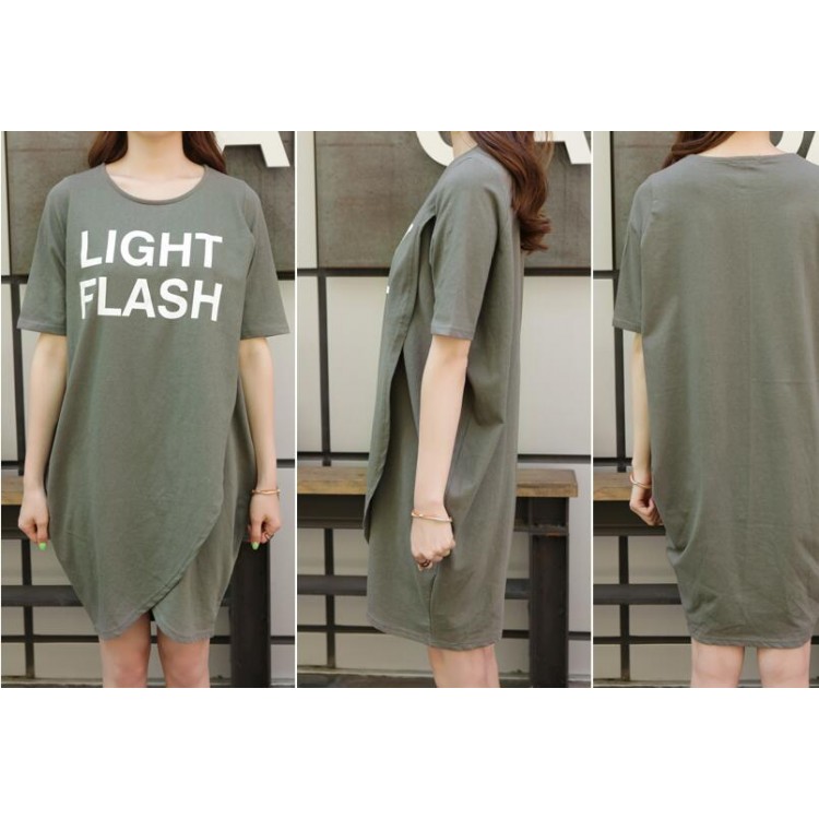 TE5727JZYS Abito casual con stampa lettere con spacco