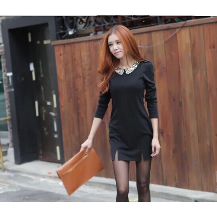 TE65081YWQS Abito slim fashion con colletto in paillettes