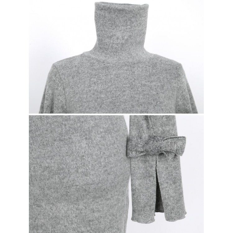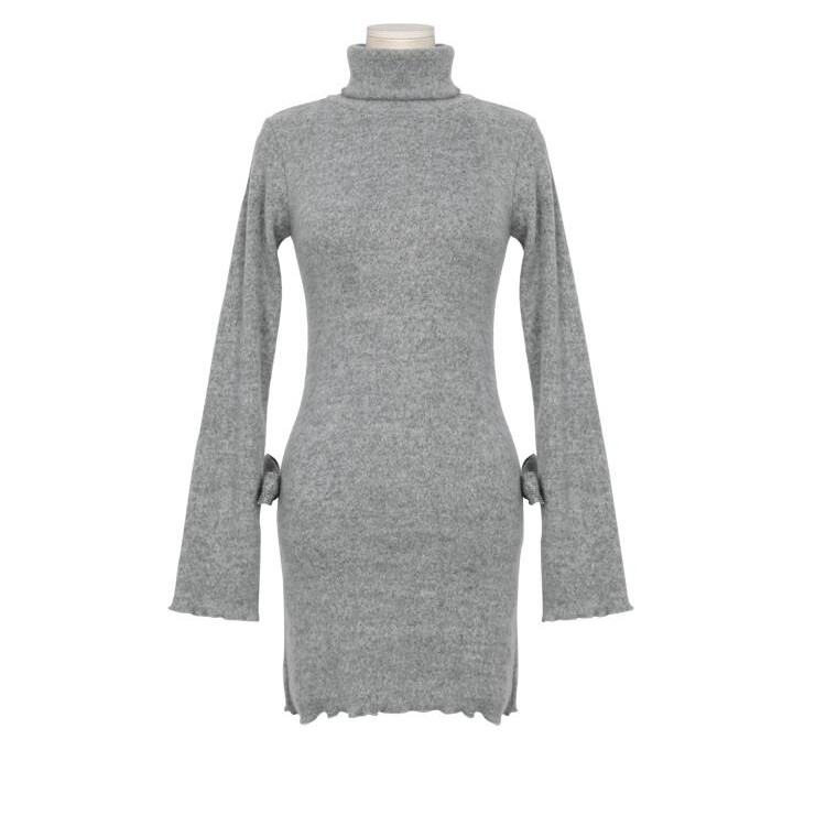 TE6545YZS Abito in maglia con bordo agarico in morbido colore puro a maniche lunghe