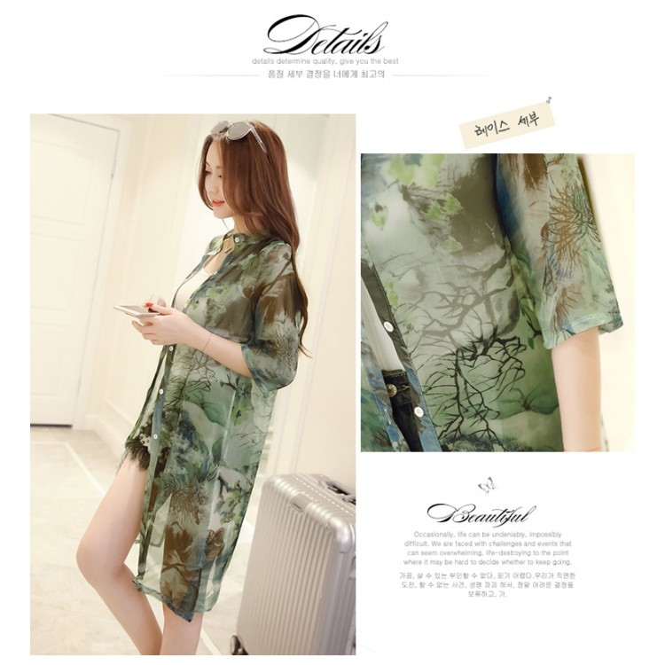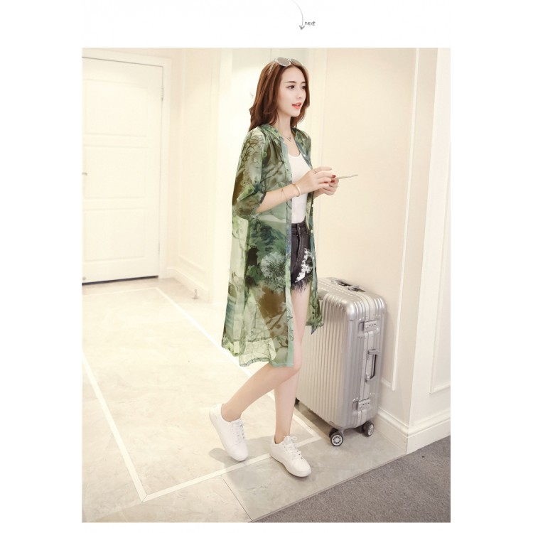 TE804AYG Cardigan lungo in chiffon con protezione solare con stampa