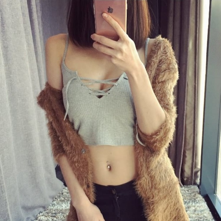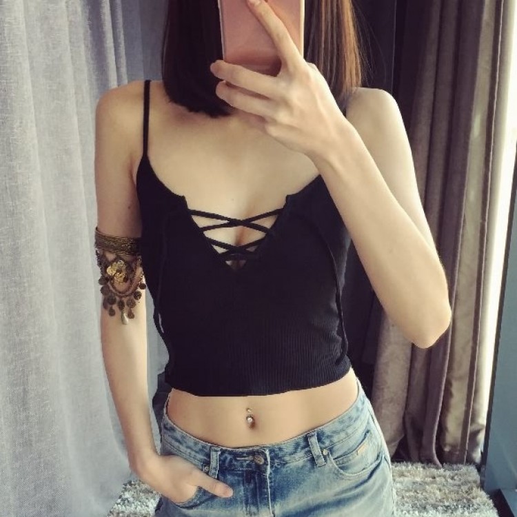 TE811WWCL Gilet corto in spandex con allacciatura sexy sul seno
