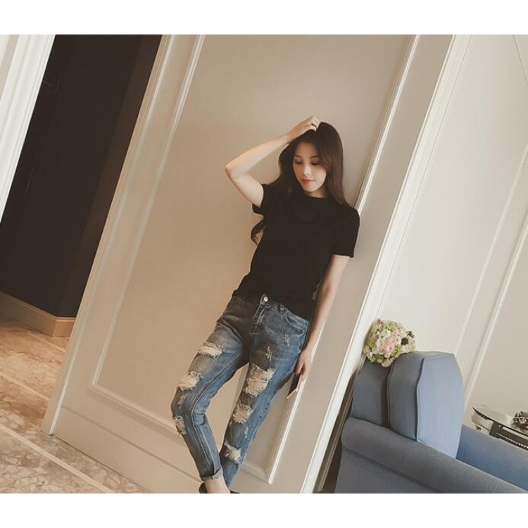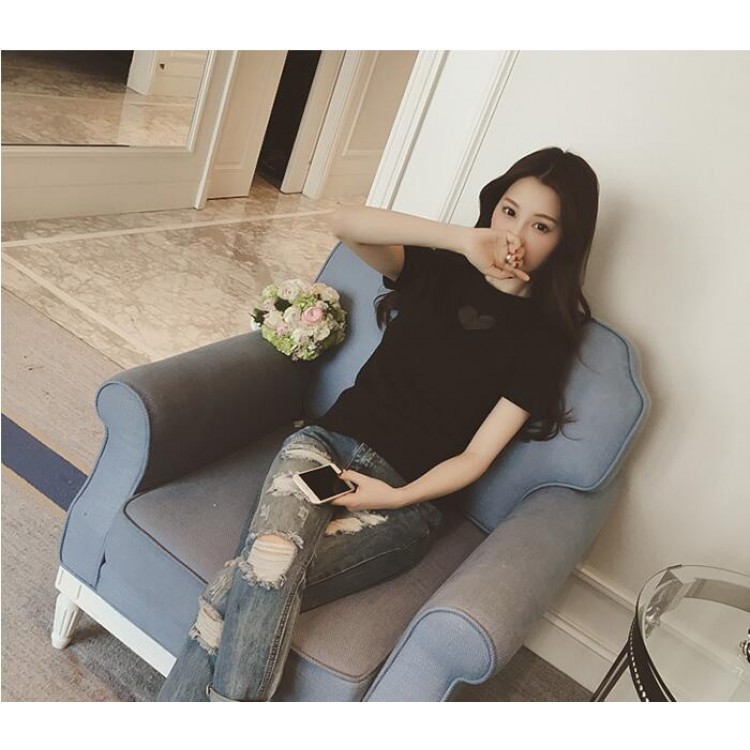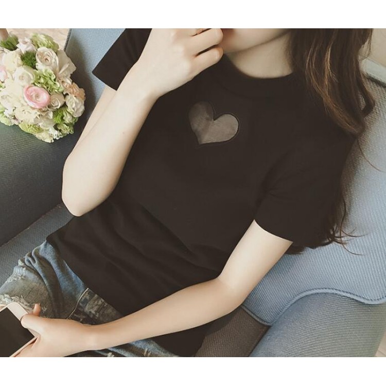 TE8121MHYR T-shirt girocollo in puro colore coreano a rete con cuore Dettagli prodotto: COLORE: Nero, Bianco Tessuto: Cotone PESO: 0,270 kg TAGLIA: Taglia unica