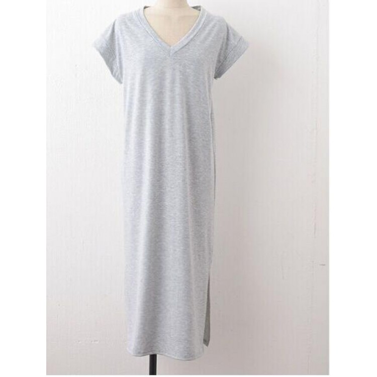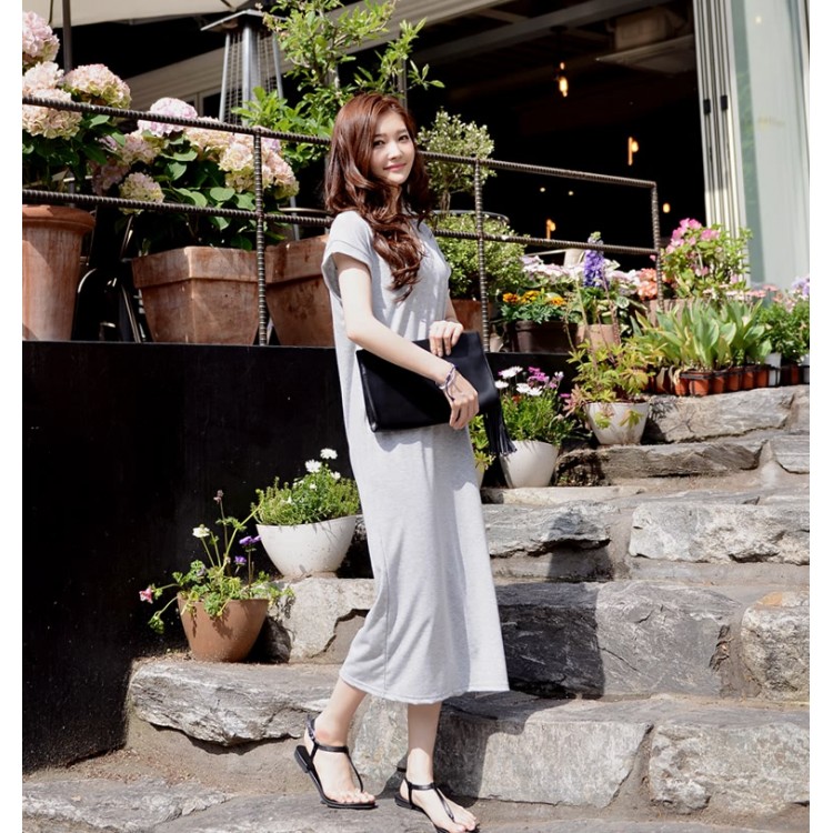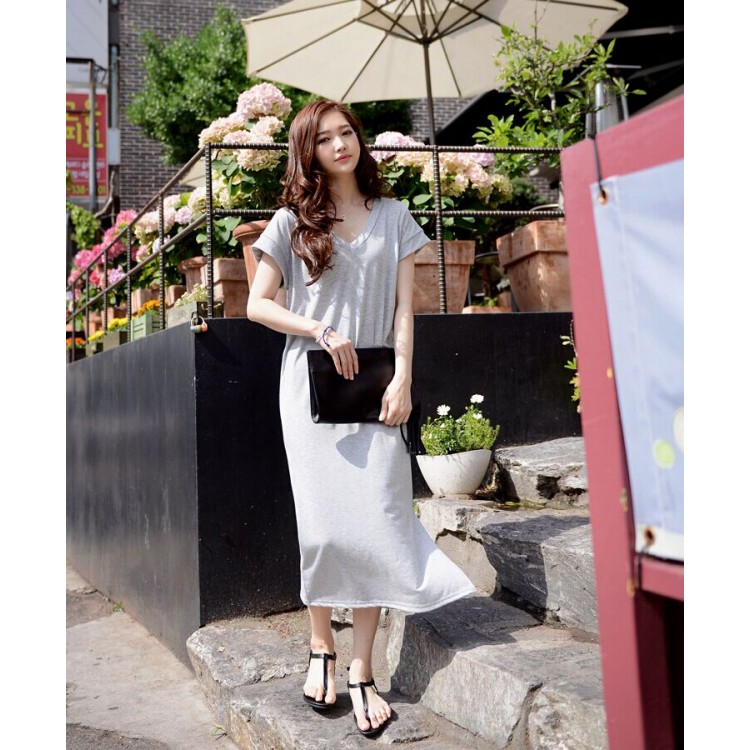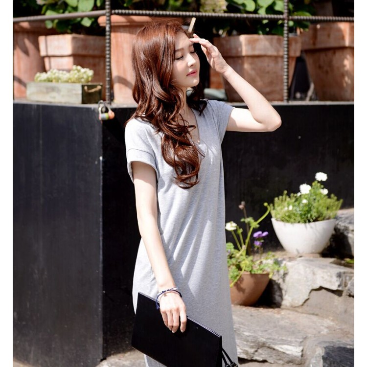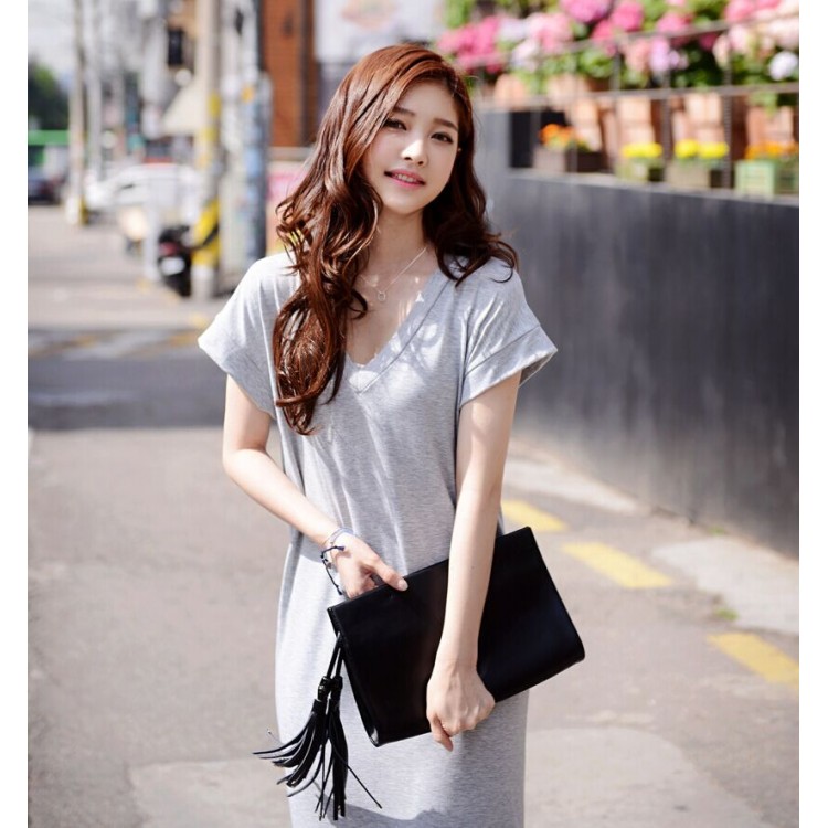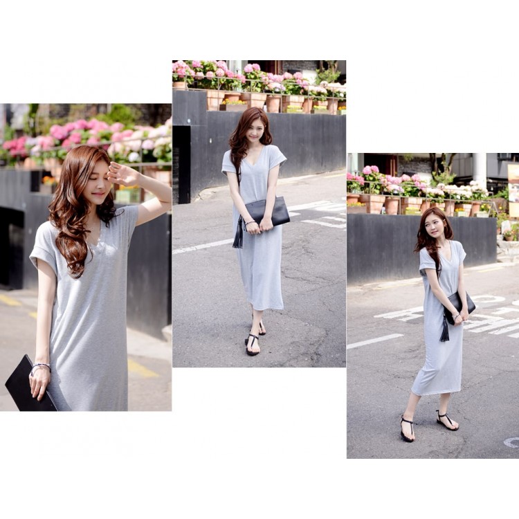 TE8257HJYS Abito lungo stile coreano con scollo a V, maniche a pipistrello, spacco laterale
