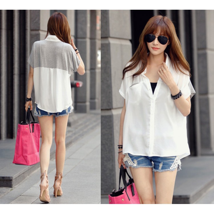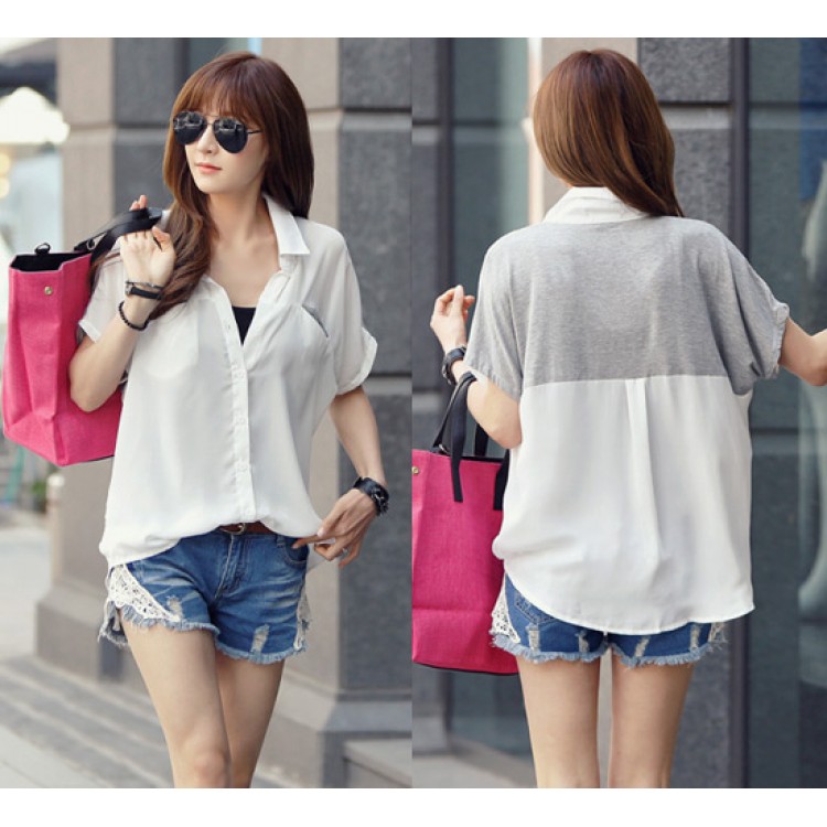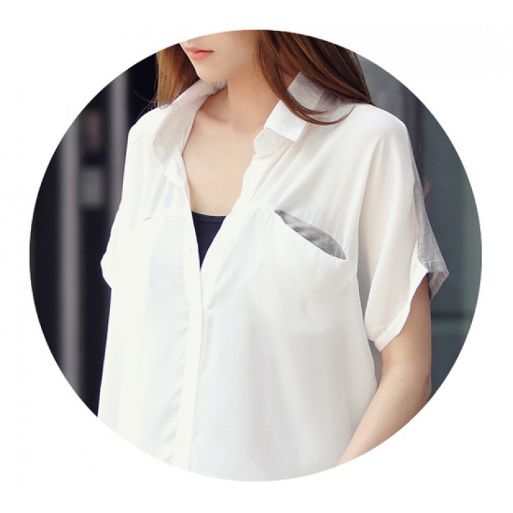 TE8761 Comoda camicetta in chiffon di cotone con impunture