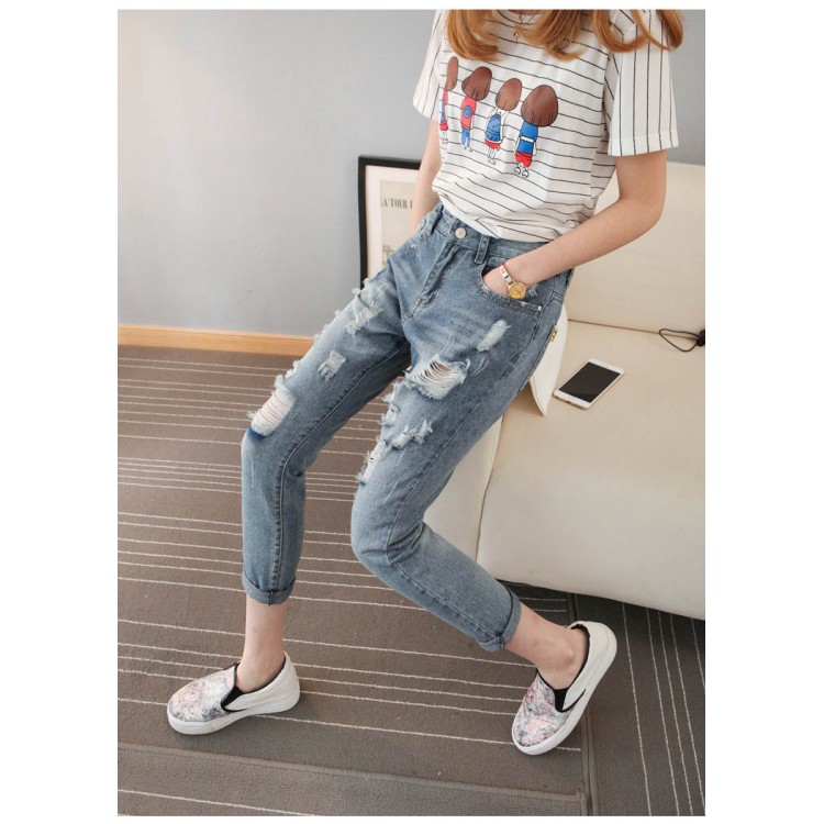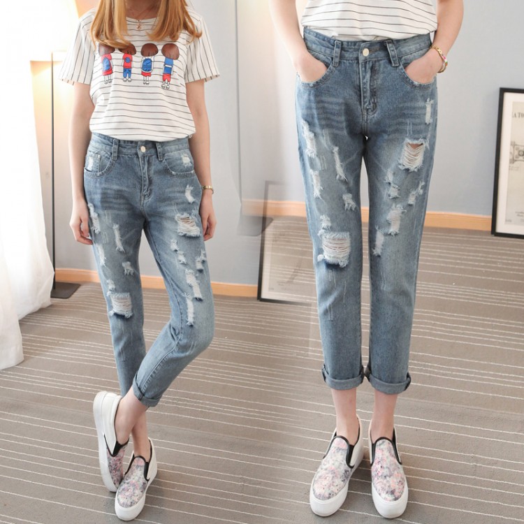 TE8836XCW 2016 autunno BF stile jeans harem con fori larghi