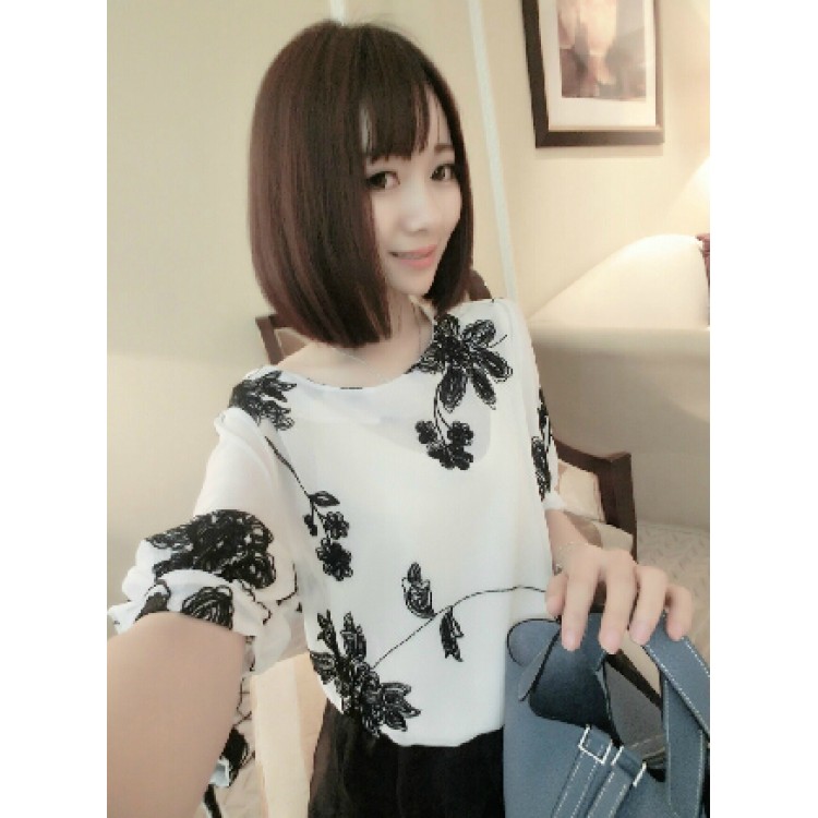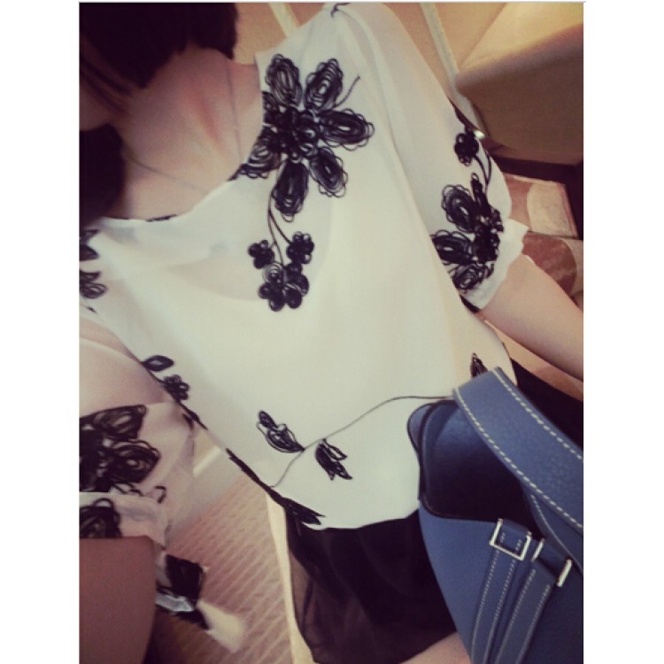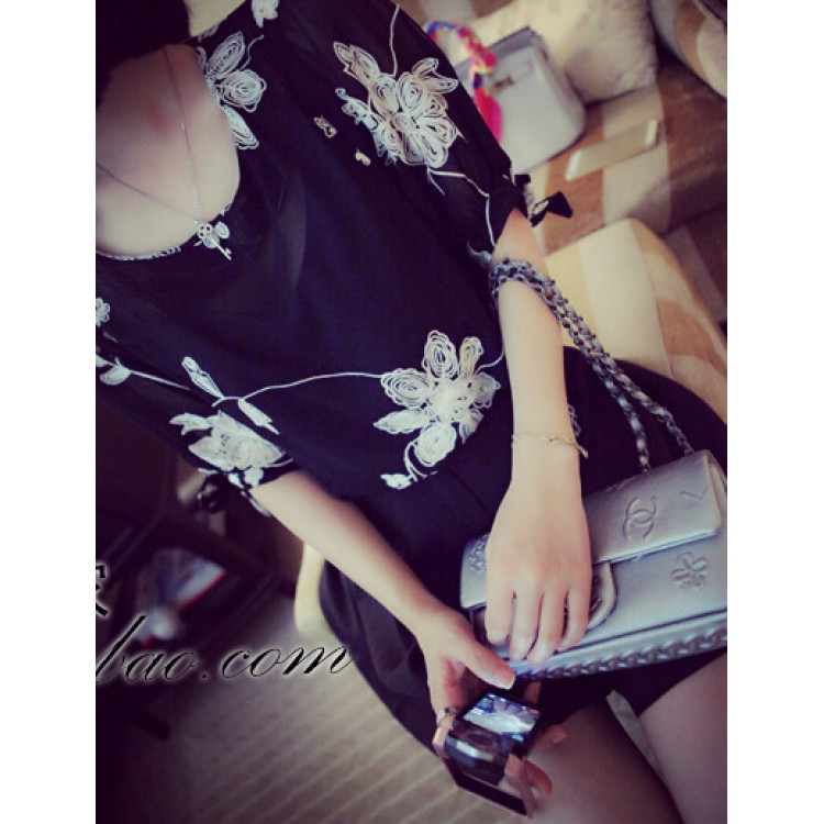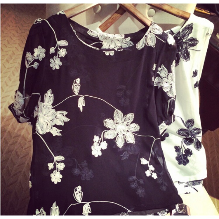 TE9038 Blusa in chiffon con ricamo vintage, fresca ed elegante