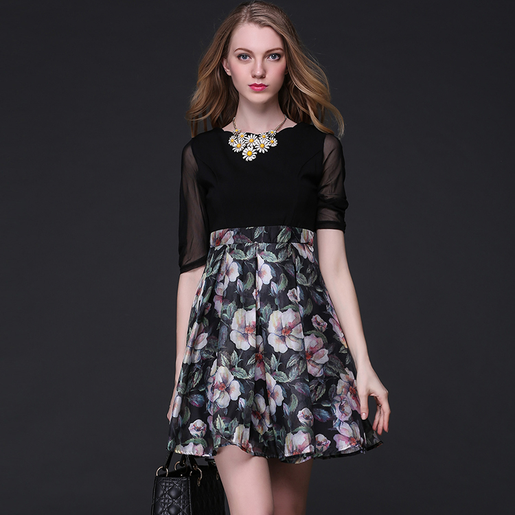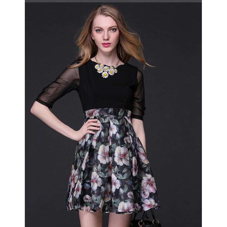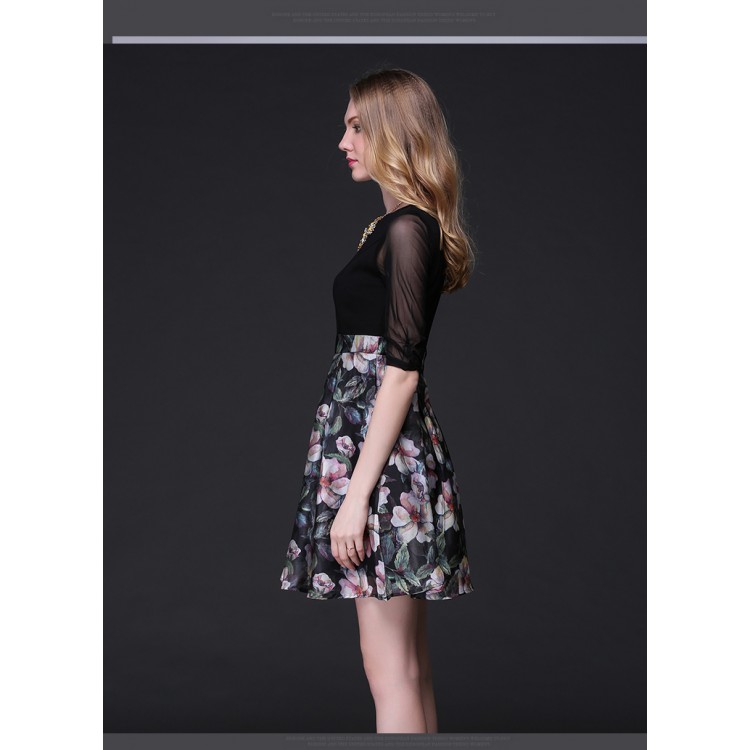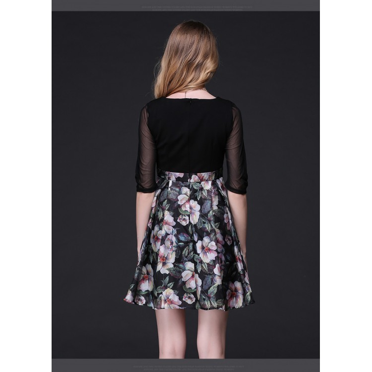 TE9100LLYG Abito a trapezio con stampa elegante e temperamento da debuttante