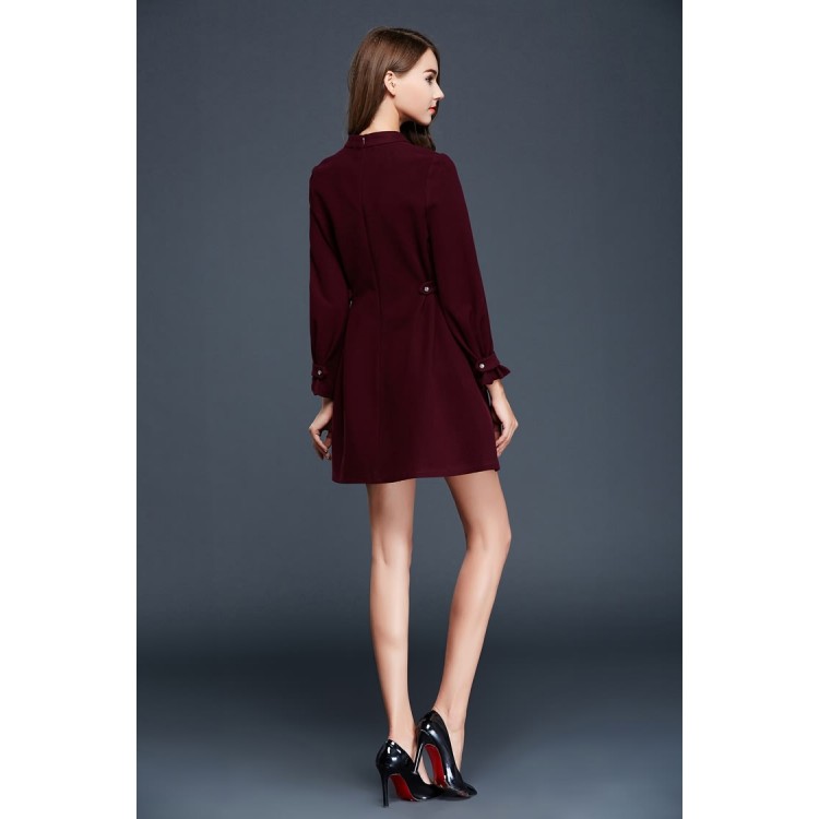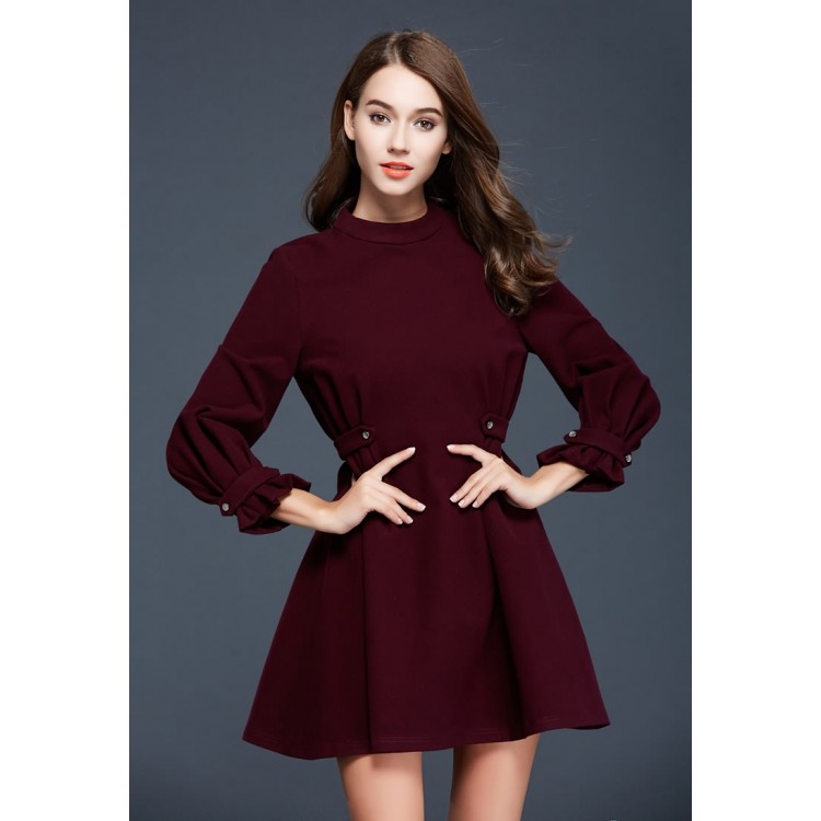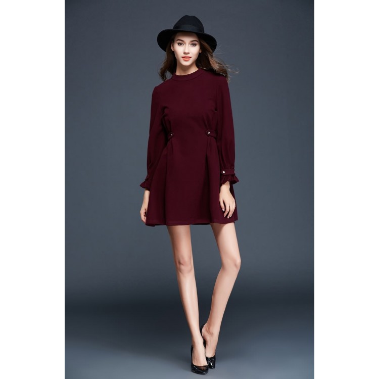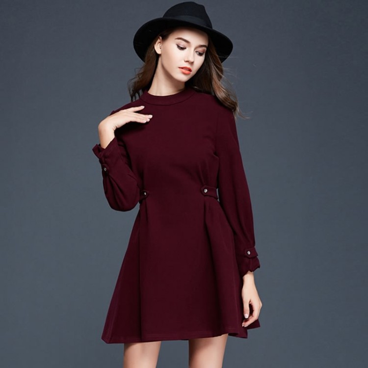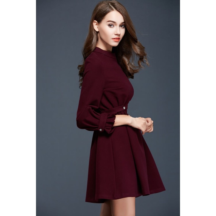 TE9637LLYG Abito temperamento a maniche lunghe con orlo ampio e vita slim