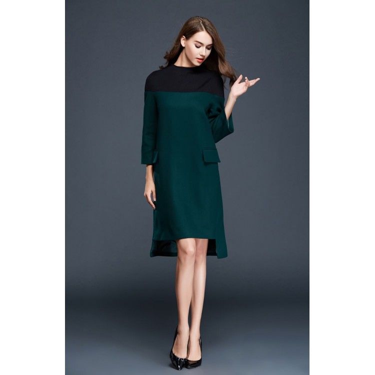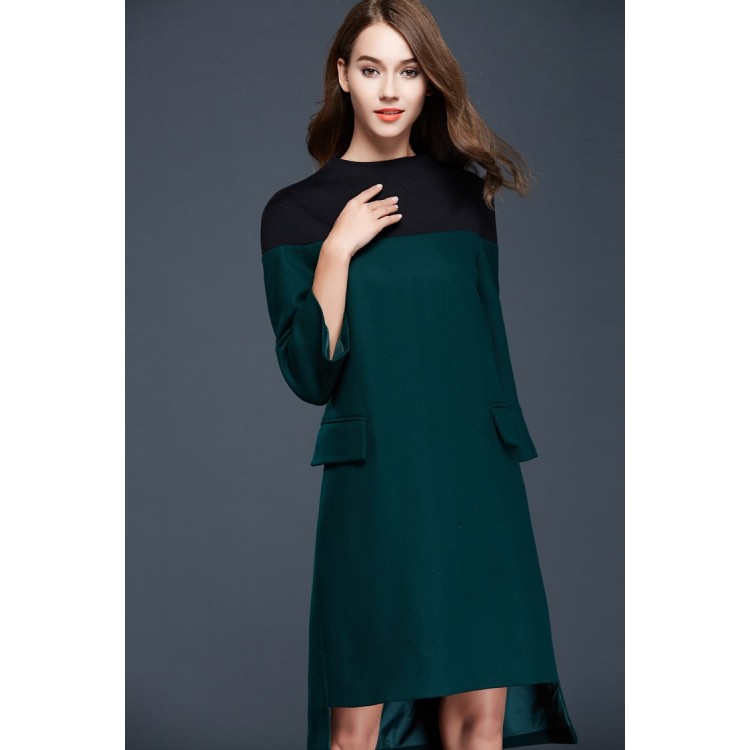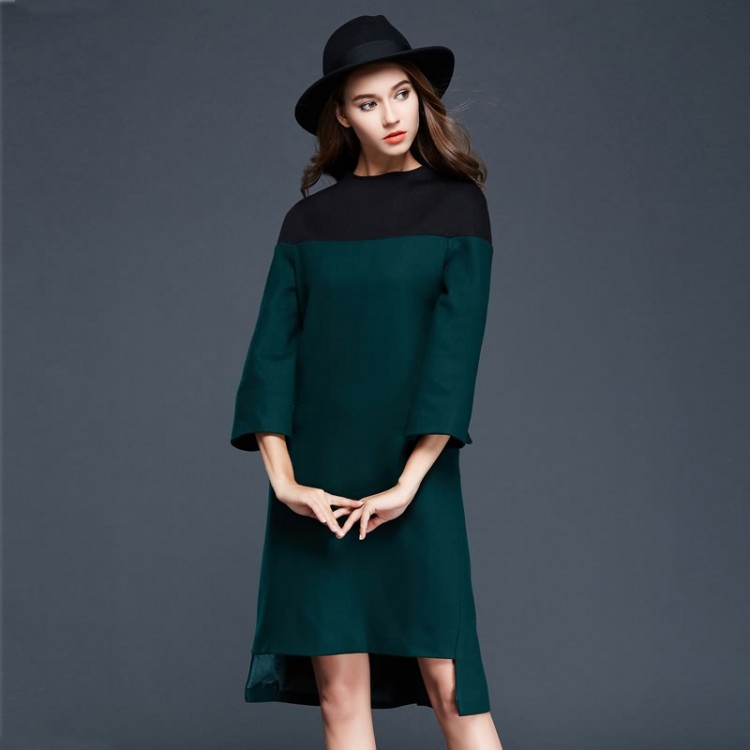 TE9638LLYG Abito in lana con colletto alla coreana abbinato a colori alla moda europei