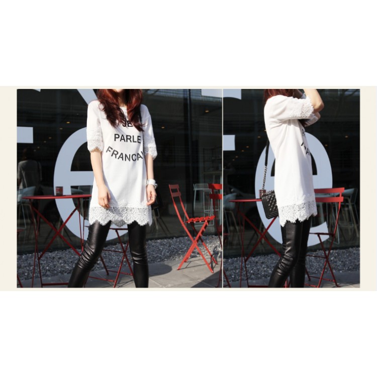 TE9796WJYS Abito coreano in pizzo con stampa a vita slim