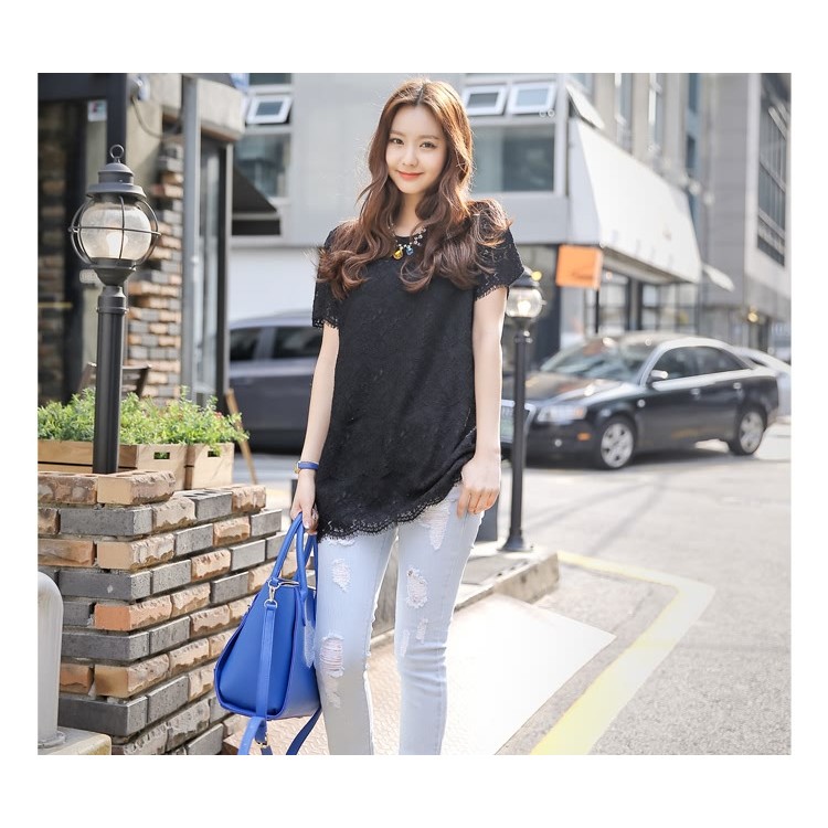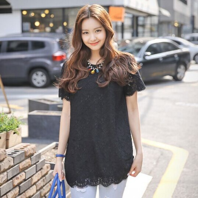 TE9905WJYS Camicia estiva con cuciture in pizzo stile preppy nuovo
