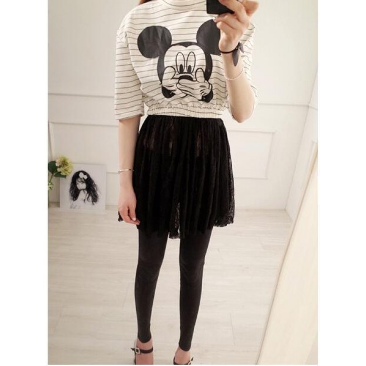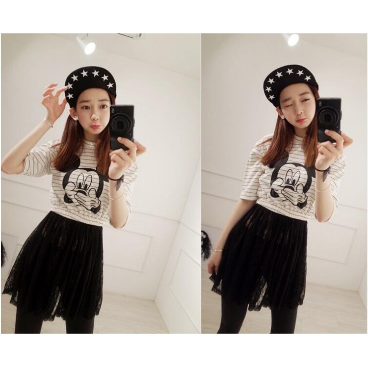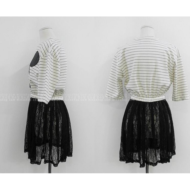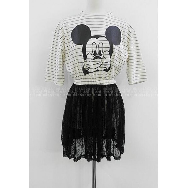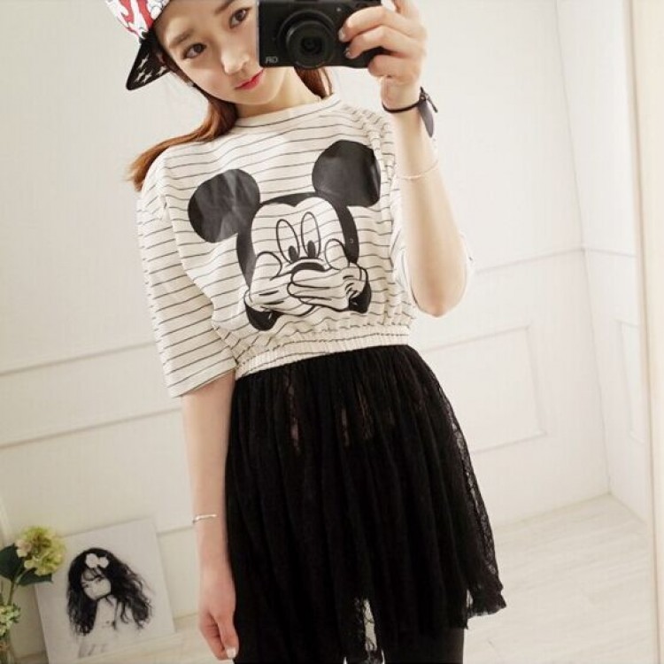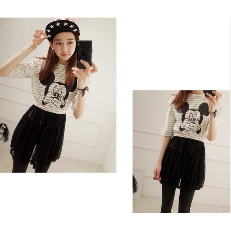 TE9909WJYS Abito a righe con stampa cartoon e cuciture in pizzo Dettagli prodotto: COLORE: Come immagine Tessuto: Cotone + Chiffon PESO: 0,310 kg TAGLIA: Taglia unica
