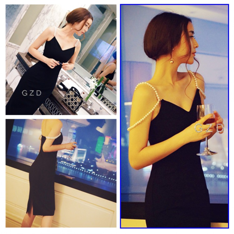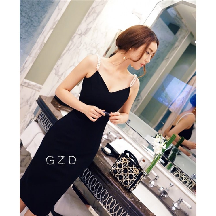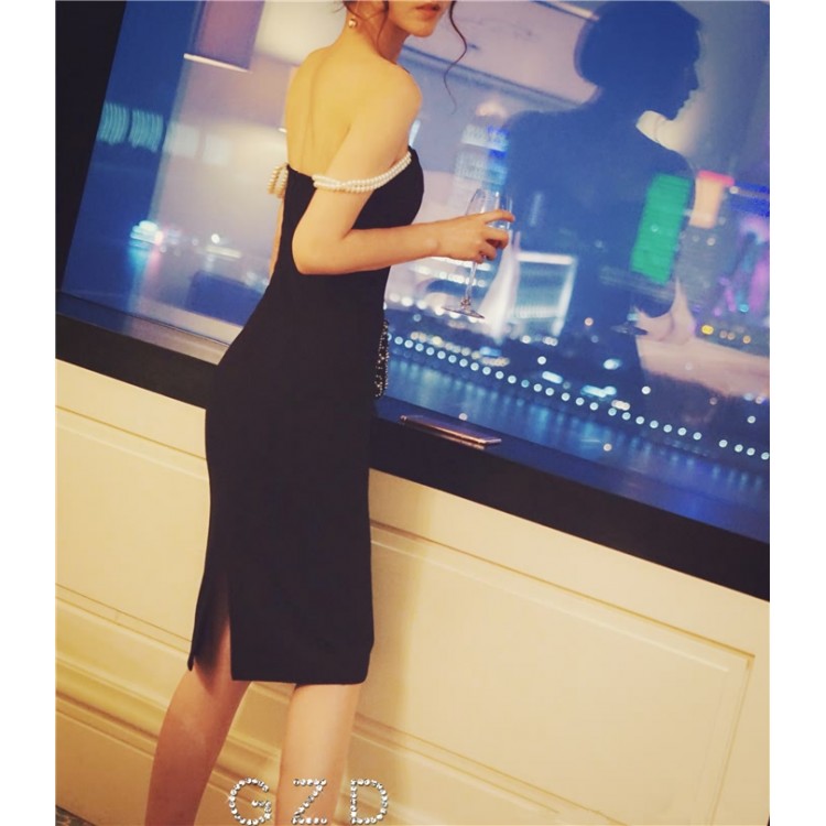 TE9930YBF Abito slim con scollo a V, spalle scoperte e spalline di perleDettagli prodotto:COLORE: NeroTessuto: Cotone pettinatoPESO: 0,310 kgTAGLIA: S, M