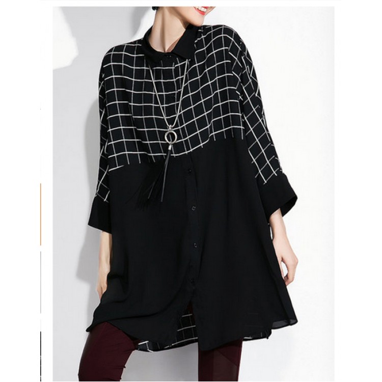 TE1686GJWL Camicia ampia e irregolare a quadri con giunture alla moda
