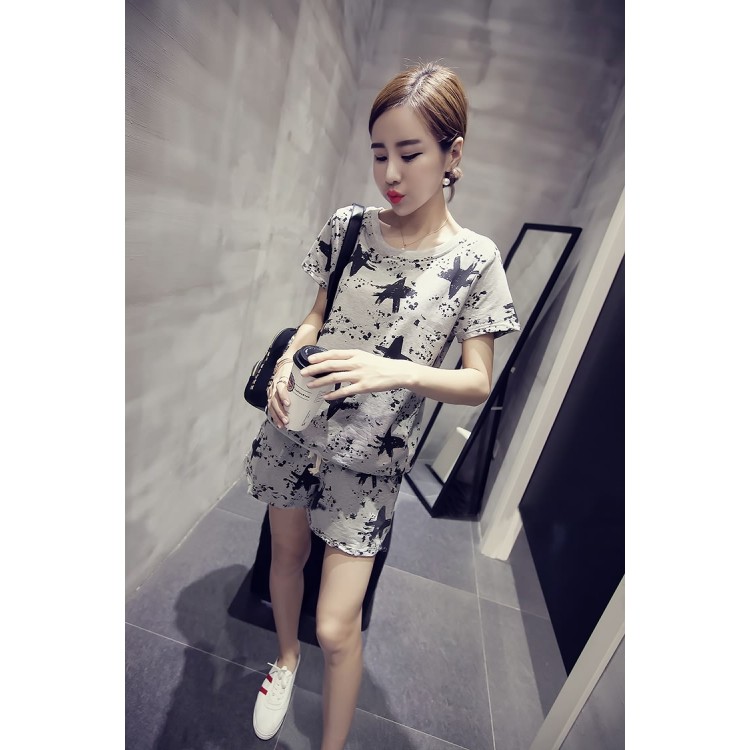TEF295LFGG T-shirt casual girocollo con stampa stelle slim e ampia e pantaloncini