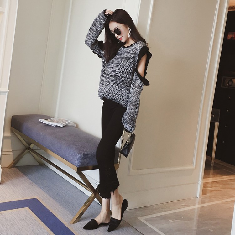 TE6566YZS Top con scollo a barchetta e maniche a tromba in lana con fiocchi di neve