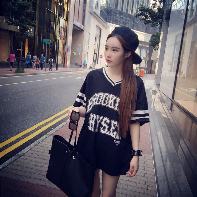 TE1075 T-shirt lunga allentata con stampa di lettere di giuntura di nuovo stile