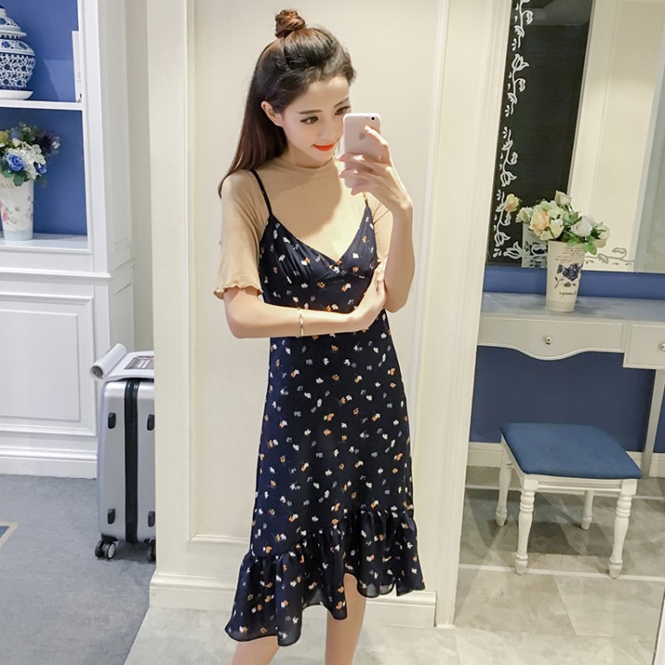 7166 t-shirt in maglia con abito in chiffon stampato