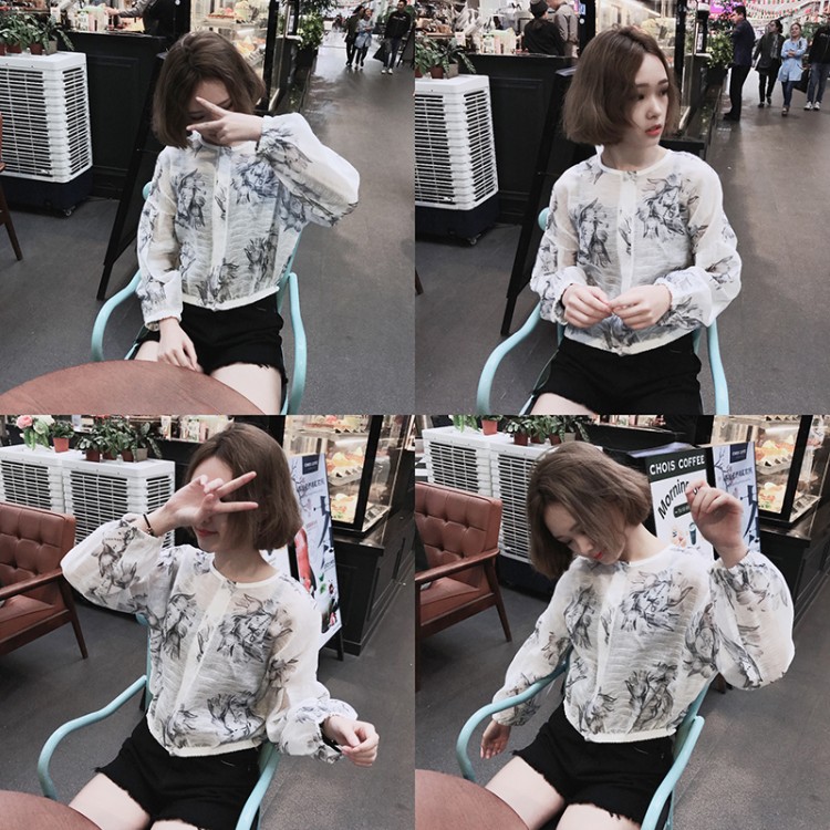 TE5027YZY Cappotto corto in organza con protezione solare stampata