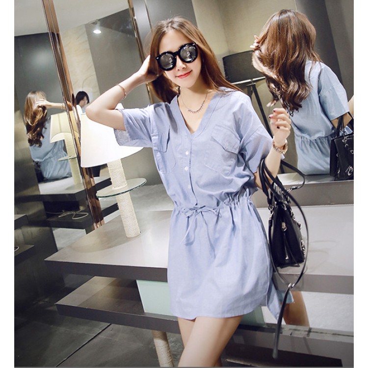 TE8199MEY Abito coreano alla moda vintage con scollo a V e vita sottile